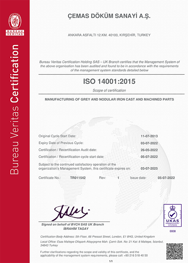 - Üretmekte olduğumuz parçaların/ürünlerin Yaşam Döngüsü Bakış açısıyla, kullanım ömrü tamamlandığında bulunduğu ülkenin yönetmelikleri dahilinde Lisanslı Firmalarda ergitilerek geri dönüşümü veya bertarafı sağlanır.