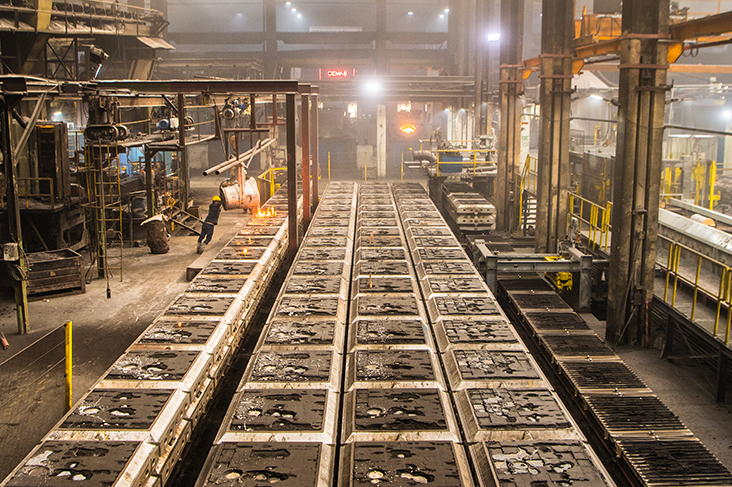 2 dikey, 2 Yatay tam otomatik kalıplama hattı mevcuttur. Kalıplama hatlarımızda 0,08 kg ile 350 kg arasında parça üretilebilir.